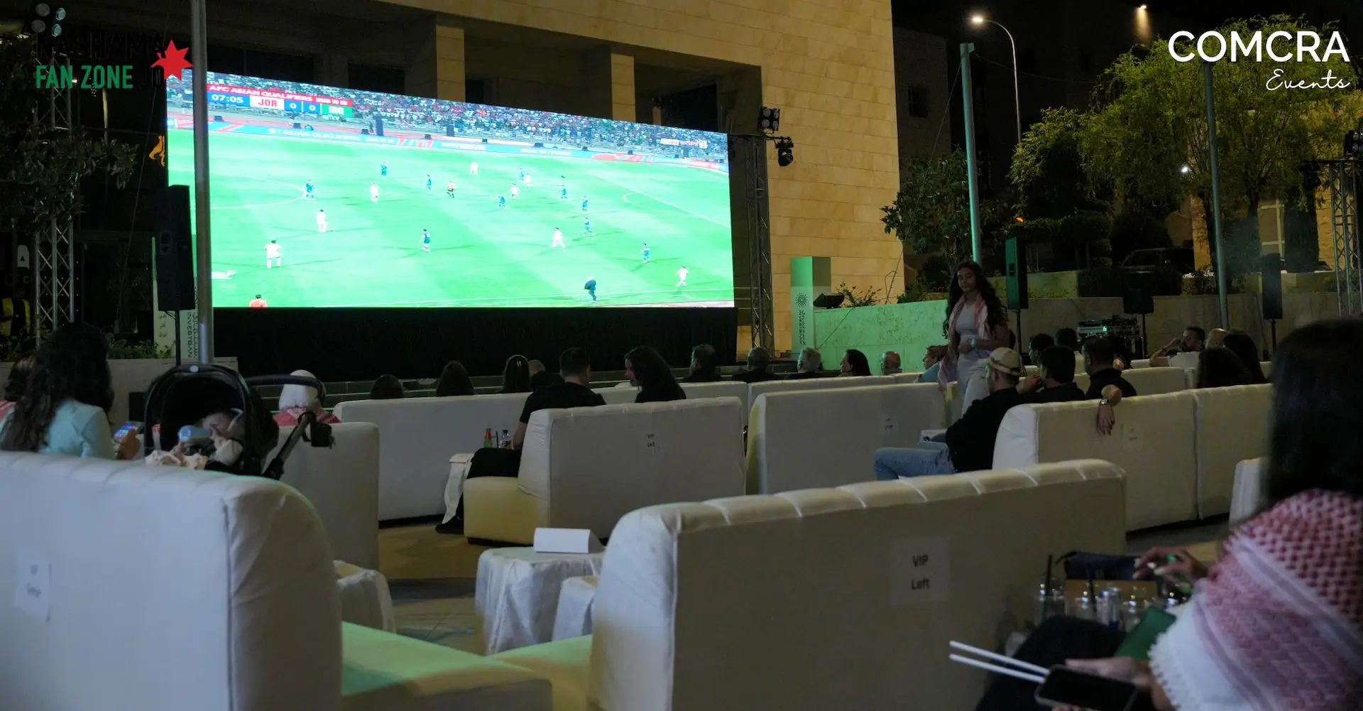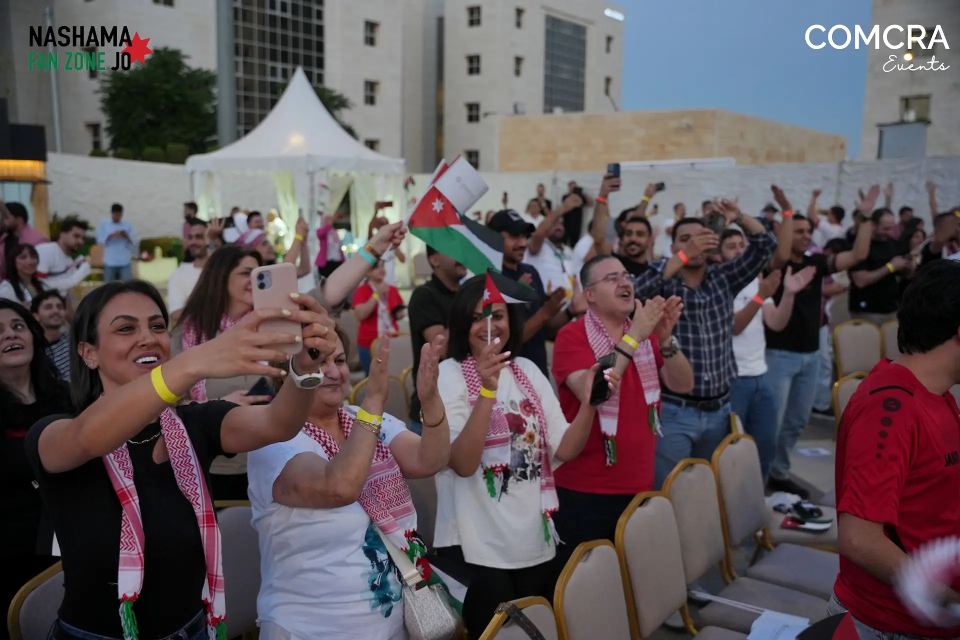 Organized by Communications Craftsmen (COMCRA) Events, the Fan Zone Jordan followed the success of the first edition during the match against Tajikistan in June 2024. It returned ahead of two critical qualifiers—Jordan vs. Oman and Jordan vs. Iraq—in June 2025. These events featured giant outdoor screens, live match broadcasts, fan giveaways, upbeat music, and an electrifying atmosphere that captured the passion of Jordanian football supporters. In total, nearly 500 fans attended the two matches, turning the space into a sea of red and white as they waved flags and sang in support of their team.