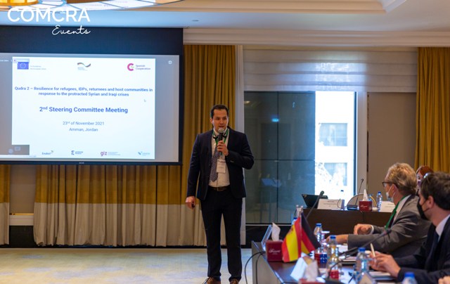 Under the framework contract for event management services with the German Development Cooperation (GIZ), Communications Craftsmen (COMCRA) events organized Qudra 2 Project – Resilience for Refugees, IDPs, Returnees and Host Communities in Response to the Protracted Crises in Syria and Iraq Steering Committee Hybrid Meeting that took place in Fairmont Amman Hotel on 23rd November 2021. The event was organized in Hybrid format (physical and virtual via KUDO platform) involving 50 participants from international and governmental institutions supporting refugees in hosting countries including European Delegation EU, Federal Ministry of Economic Corporation and Development BMZ, German Development Corporation GIZ, Expertise France and Ministries of planning in Jordan, Iraq, Lebanon and other relevant institutions from Turkey, France, Spain and UK.